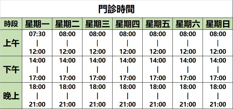 時間:每周一至周五(下午及晚上)、逢國定假日休息
